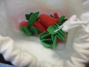 4 wooden boards 1 wooden cube 5 blue circles 5 wooden carrots 9 wooden worms - purple , peach and blue